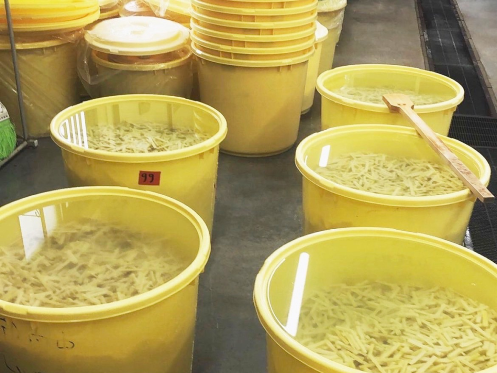子ども達と一緒に伐採された竹は、メンマ業者さんの手によってメンマに代わっていきます!